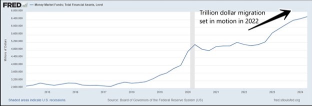 “Cash is king” has been the mantra for years now. Households have poured cash into money market accounts at stunning levels. But we are now already witnessing the buildup beginning to unfold.