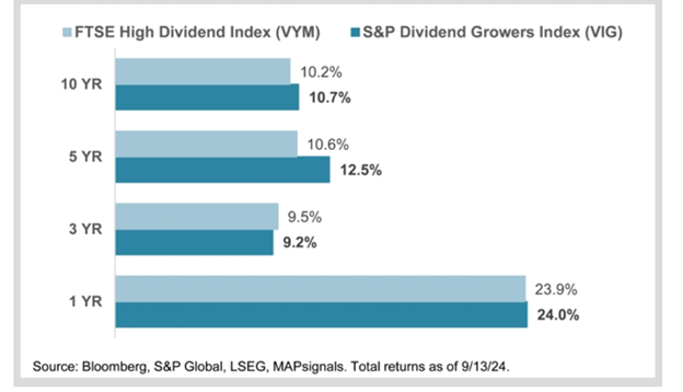 Either way, it's almost assuredly a head fake, and soon that juicy yield is often wiped out by capital losses. So, it's no surprise that dividend growth strategies consistently outperform their high dividend yield counterparts: