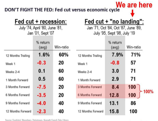 First, the Federal Reserve is dovish, and we know historically stocks are higher three months later, seven of seven times after the first cut: