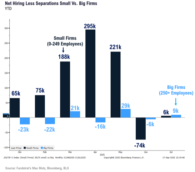 It appears labor tightness is the key catalyst to propel the Fed to announce the quarter-point cut last week. So, the most important takeaway regarding the employment data is that it’s worse for the economy when small businesses are struggling to fill job openings in comparison to big companies.