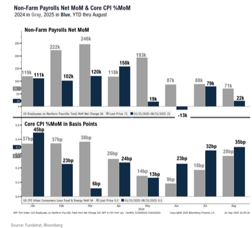 In the official policy statement, the central bank acknowledged its assessment of the labor market had changed, indicating “downside risks to employment have risen.” This is a notable shift. In the past, the focus seemed to remain almost solely on unknown inflation risks.