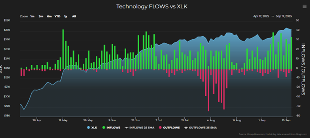 The continuing inflow strength within tech last Wednesday as a reaction to rate cuts is significant. It indicates that we can expect more of the same strength moving forward.