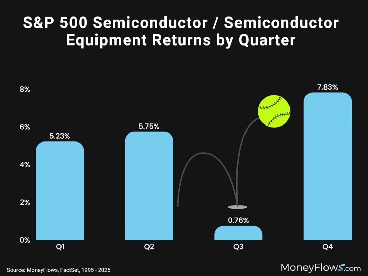The most important subsector of technology currently is semiconductors due to its fundamental importance in the AI revolution. So, the first bit of data to highlight is that if we look back to 1995, the fourth quarter is historically the best quarter for semiconductors: