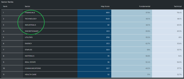 The drivers behind the “Trump put” are deregulation, a declining cost of capital for businesses in general, and overall animal spirits. These are all reflected clearly in the top current sectors, which are all cyclical growth sectors: