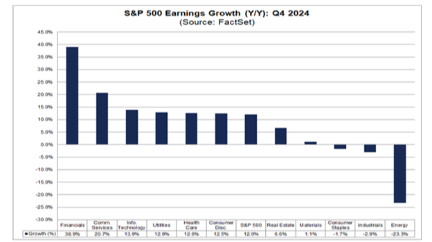 Drilling down, eight of the 11 sectors are predicted to report year-over-year earnings growth in the fourth quarter and six of those eight sectors are expected to report double-digit earnings growth: