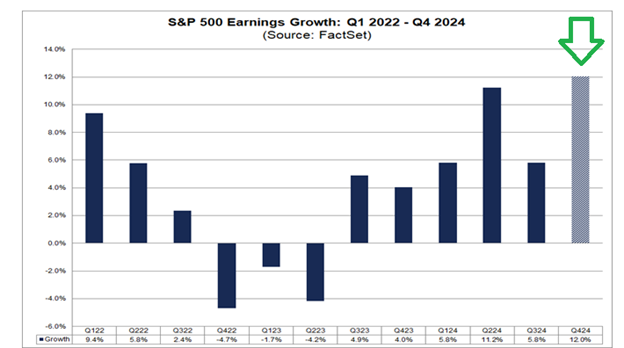 According to FactSet, the S&P 500’s estimated fourth-quarter earnings growth rate is 12%, doubling the 5.8% gains of the outstanding third quarter earnings: