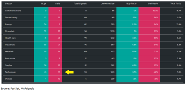 Interestingly, the tech sector recently had its first week of more selling than buying in quite a while: