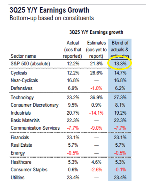 For perspective, on Sept. 30, the estimated earnings growth was 7.9%. Now, 10 sectors are reporting higher earnings due to the magnitude of these positive EPS surprises:
