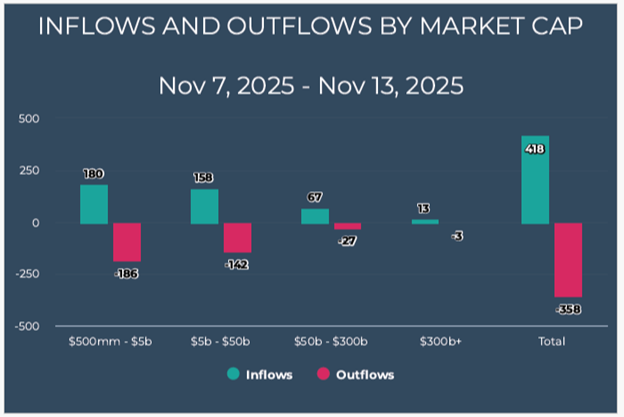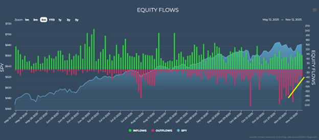 Not only did we see a quick slowdown in outflows, but the cherry on top of this pivot that began on Friday, Nov. 7, is it also brought an increase in inflows, reversing the early November trend: