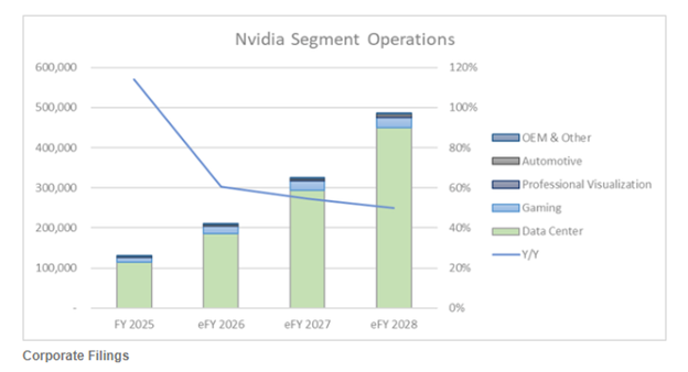 Consensus estimates project around $55 billion in total revenue for the quarter, with $48.88 billion of that expected to come from the data center segment. Both numbers would be increases of over 50% year-over-year.