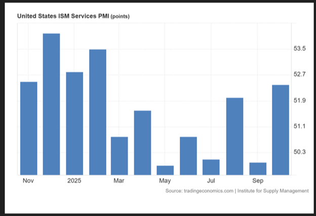 It’s not a coincidence that this reversal coincided with the release of a flurry of positive economic data. For instance, the ISM Services index for October was strong, quickly reversing from a flat September: