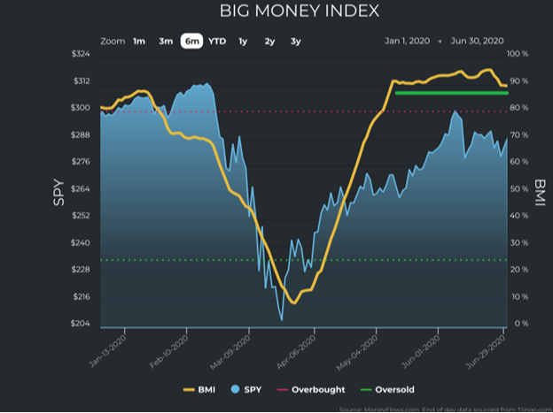 In 2020, the BMI flatlined in overbought territory for weeks: