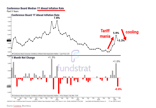 We're even beginning to see fear dissipate in new economic data expectations. For instance, last week the Conference Board’s forward inflation expectations dropped for the first time in five months: