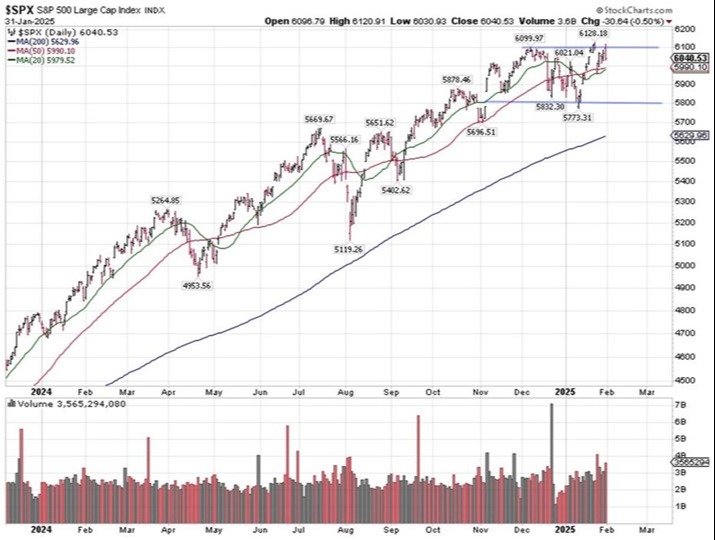 Knowing February is a seasonally weak month, it’s possible the index could test 5,800 again. Should that happen, it could be the result of too many tariffs being applied too quickly on too many countries.