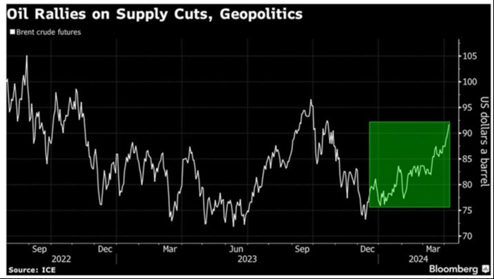 Additional inflation concerns revolve around oil. Brent crude recently hit a price of $85 per barrel, which is a multi-month high, due to supply cuts and volatile geopolitics.