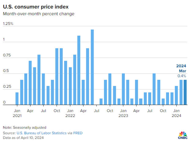 We at Cornerstone Financial Services viewed last week’s March consumer price index report as a potential catalyst for the short-term direction of the markets following the recent consolidation. Going into the report, we felt probabilities favored a cooler CPI figure. Unfortunately, that was not the case.