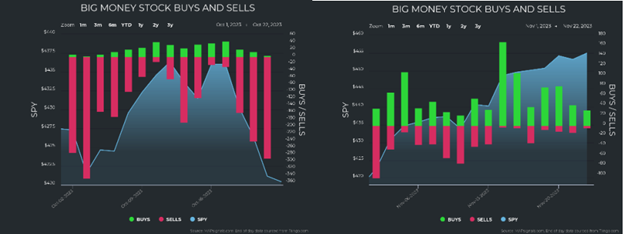 October experienced only 416 buys versus 3,476 sells from “big money” investors, whereas November saw 936 buys and 543 sells: