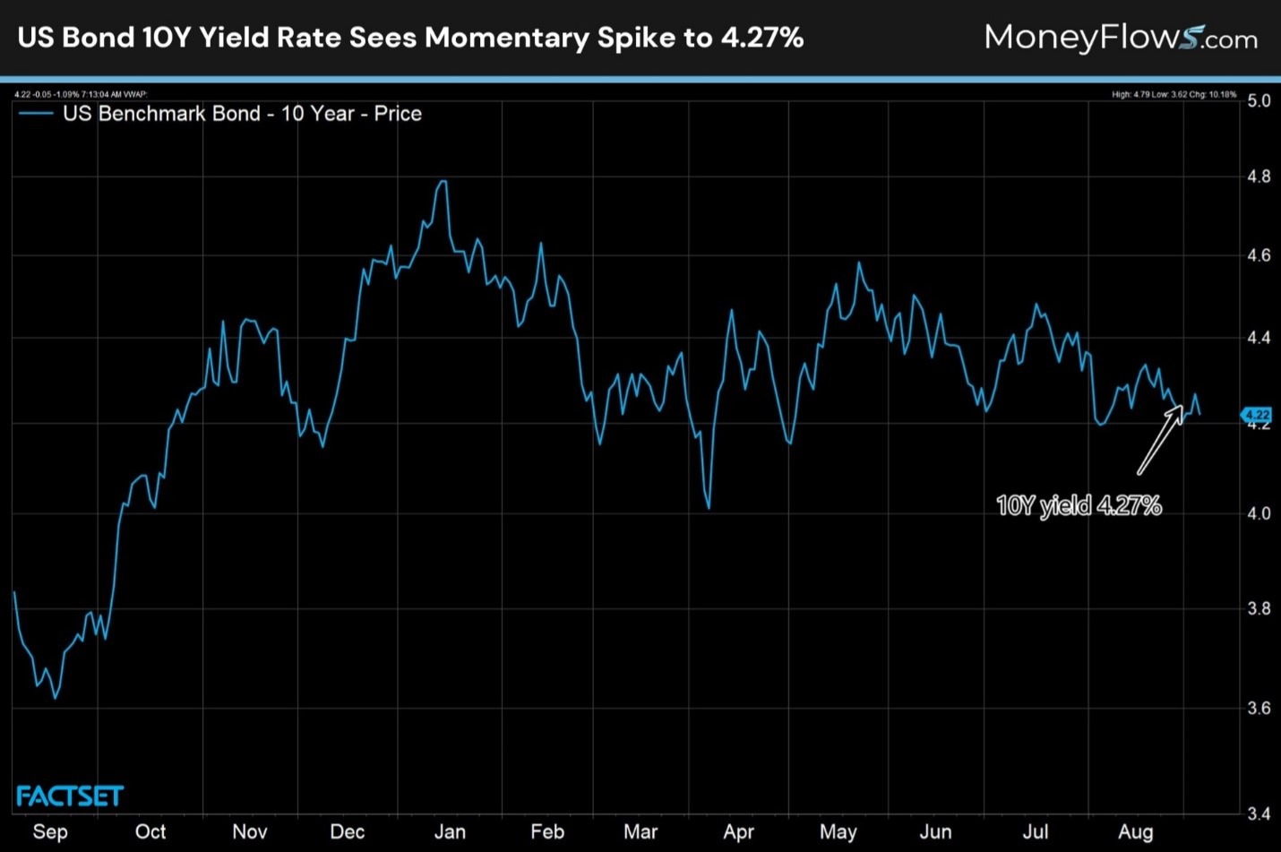 Even though the news talked about 30-year, let’s address the 10-year yield because that's what we concentrate on more here anyways. The 10-year yield nearly hit 4.3%: