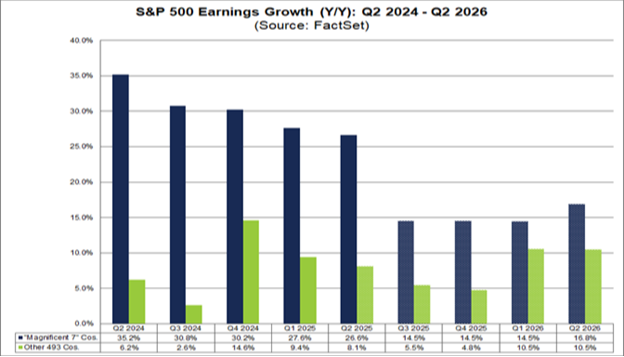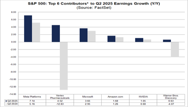 That level of strength led to four of the Mag 7 companies being among the top six contributors to earnings growth for all of the S&P 500 for last quarter: