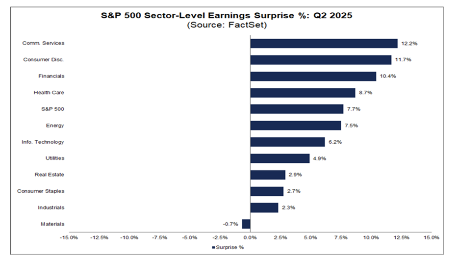 Early expectations were for Mag 7 companies to grow their earnings by 13.9%. All of them reported positive EPS surprises. In aggregate, Mag 7 companies exceeded estimates by 12.7%% compared to +5.6%% for the other S&P 500 companies: