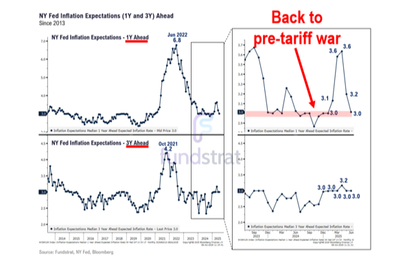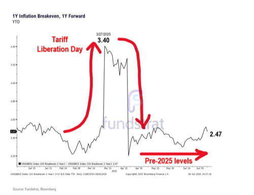Taking all this data together, it’s quite encouraging, especially in conjunction with how the one-year inflation expectation is back to pre-February tariff levels: