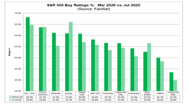 This is illustrative of the unique environment we are currently in. That is, there's a combination of fundamental earnings growth and Q1 price contraction. It’s illustrated in the fact that buy ratings have fallen to 55.8% at the end of July 2025, while having increased to 58.2% today. Importantly, this confidence has been broad in nature as eight of the 11 sectors have seen an increase in their percentage of buy ratings during this period.