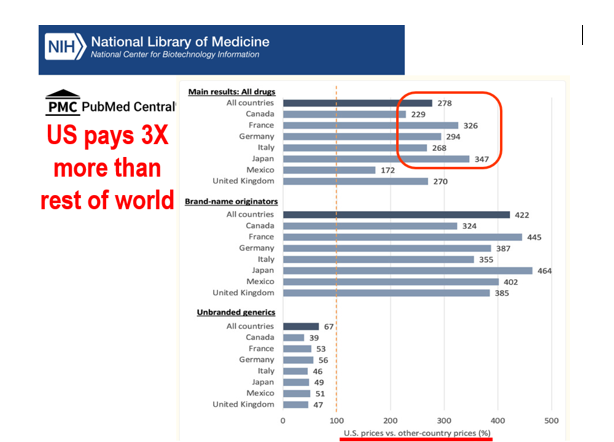 We can likely all agree the U.S. health system has room to improve. One reflection of that is the U.S. pays three times what other nations pay for drugs (sometimes more):