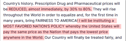 The executive order requires the U.S. pay “most favored nation” status, the lowest available price.