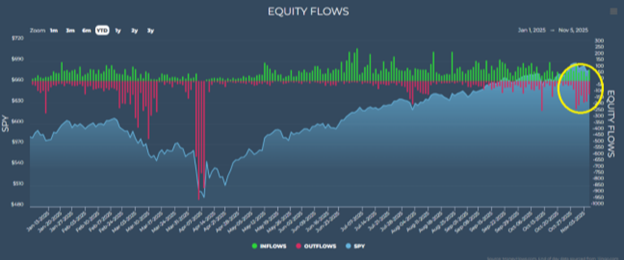 Peeling back the onion, we can clearly see why the BMI has recently increased the speed at which it's drifting lower. It’s due to outflows that have picked up over the last week or so:
