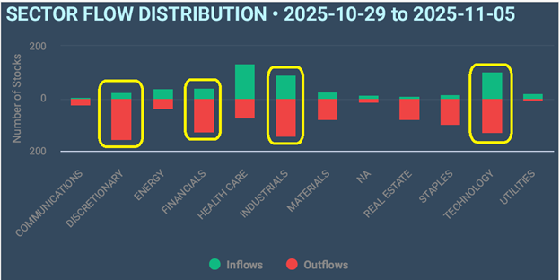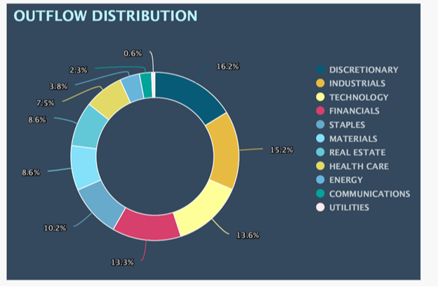Those four sectors alone make up 58.3% of the outflow distribution over the past week plus: