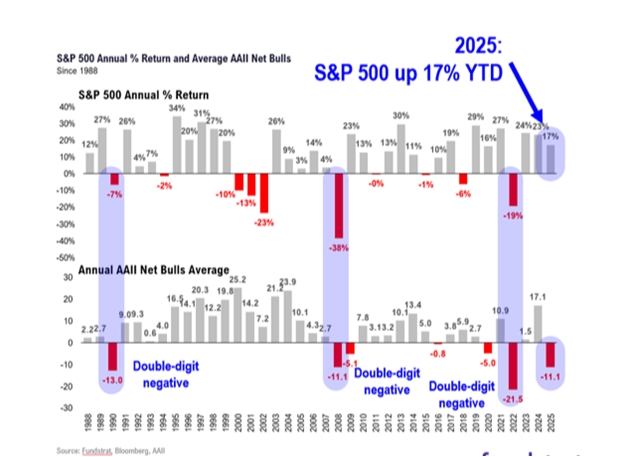 That said, it’s understandable there could be near-term choppiness in the markets as they continue to digest healthy October gains. We clearly do not see any evidence of over-exuberance yet. Individual investor data shows significant bearishness over bullishness, even as markets rise: