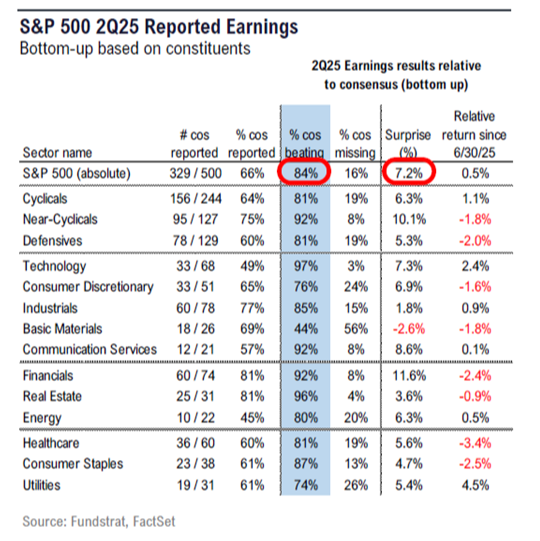 So far, 84% of companies are beating earnings estimates. While that’s impressive, it’s more important that these companies are beating by a median of 7.2% to the upside: