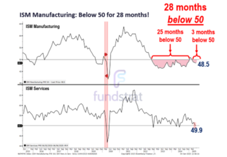 While we don't know how phase three will play out yet, we think the final three to four months of 2025 will provide relief for markets. That’s because we think the Fed will finally begin to cut rates while at the same time the ISM Manufacturing index recovers and rises above 50 after spending 28 months below 50: