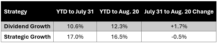 Drilling down, when an index like the equal-weight S&P 500 is flat and the Cornerstone Dividend Growth Strategy is up in August, there’s clearly been a rotation.