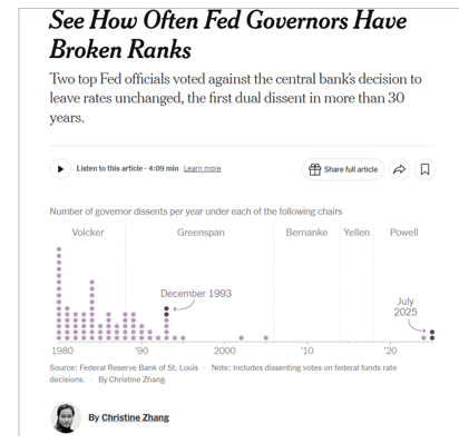 Even if that happens, a floor will most likely appear quickly as we transition into a rate-cutting period, which has become even more probable given the central bank's recent decision to leave rates unchanged and Chairman Powell’s doveish commentary at Jackson Hold last week. Interestingly, two top Fed officials dissented: