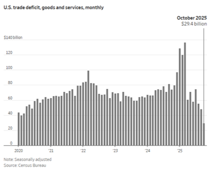 That was the lowest U.S. trade deficit in five years. Then October data was even better. The deficit was just $29.4 billion, the lowest in 16 years: