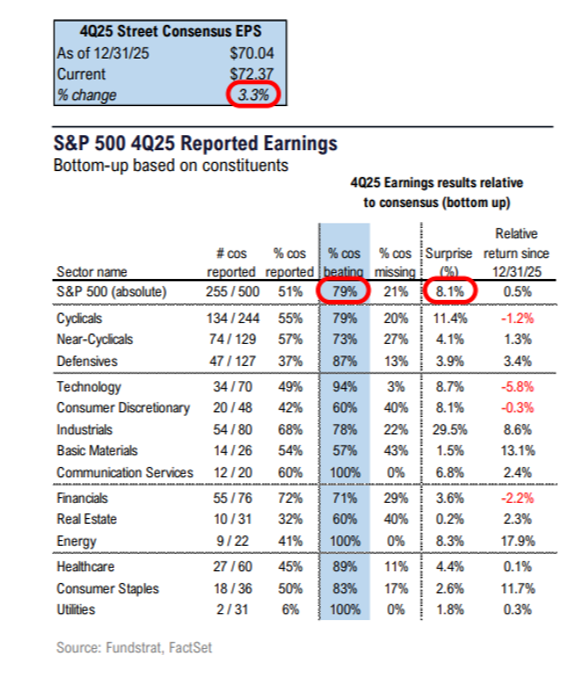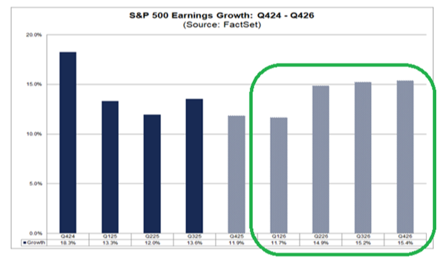 Tying this all together, the combination of productivity boosts and economic growth are beginning to form the mathematical foundation needed in support of increasing earnings growth expectations throughout 2026: