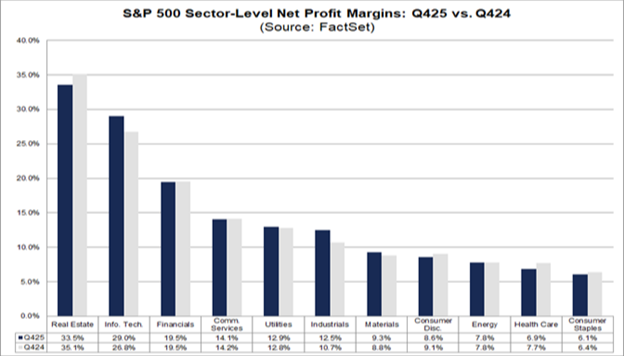 Should that hold, it would be the highest ever reported level since FactSet began tracking in 2009. This metric is also led by tech and industrials: