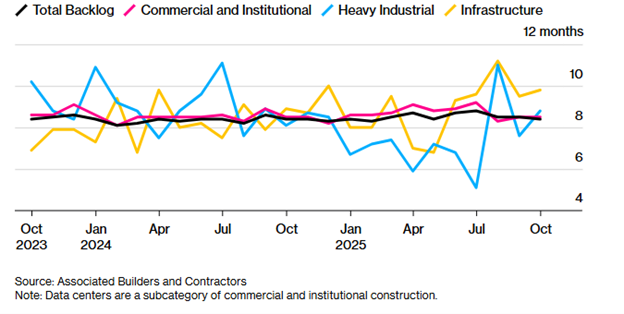 We can be confident this level of capital spending will not end in 2026, at least. There’s a substantial backlog in data center construction projects: