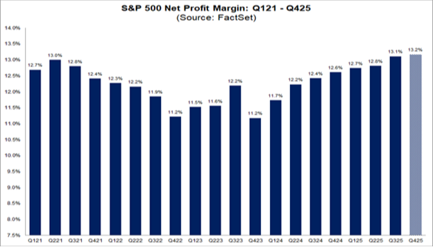 Even more impressive is the current blended net profit margin for the S&P 500. For Q4 2025, it’s now 13.2%: