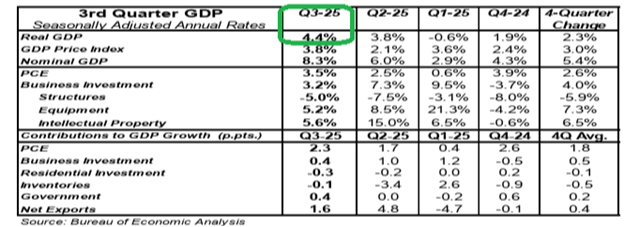 For example, just last week we saw the Commerce Department revise and finalize its third-quarter 2025 GDP estimate to a 4.4% annual pace: