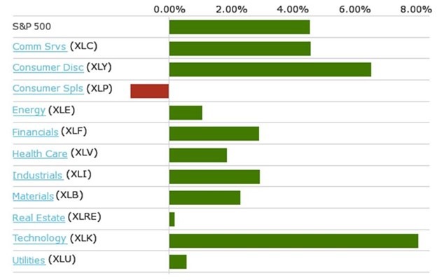 Most importantly, over the last two weeks bull market growth engines like technology and discretionary stocks have led the market charge: