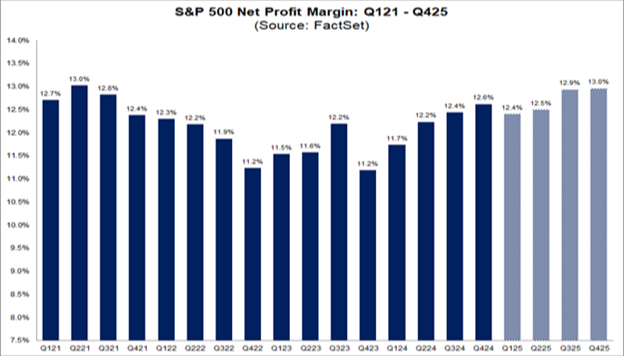 Digging further, as we sit here today, the blended first-quarter net profit margin for the S&P 500 is 12.4%. That’s above the five-year average of 11.7%. If that figure holds, it would be the fourth consecutive quarter of the S&P 500 reporting a profit margin above 12%.