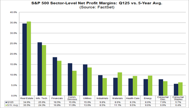 On a sector level, six of the 11 sectors are beating their five-year net profit margin averages: