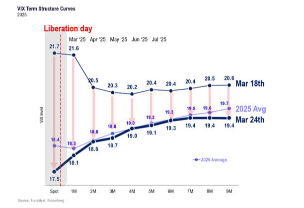We can see the positive effect of these macro developments in improved technical conditions as volatility begins to collapse. For example, the market’s “fear gauge,” the CBOE Volatility Index# (VIX), has been elevated due to tariff concerns. However, future expectations eased and provided a sense of upcoming “liberation” for equities: