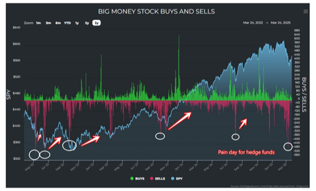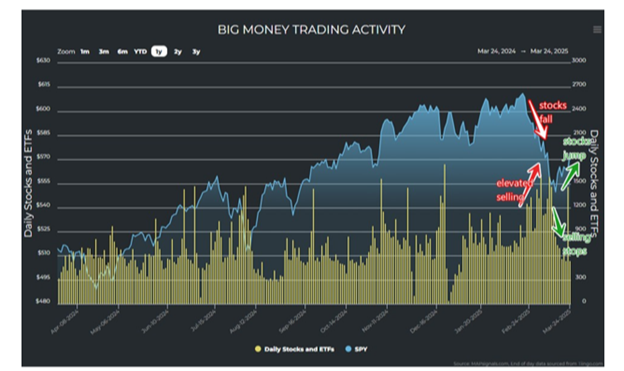 We can get a real-time indicator based on any elevated trading flows. This is important because there is a correlation between increased activity as stocks fall and forced selling.