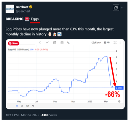 Additionally, we have a level of comfort ahead of upcoming inflation data as major pain points are moderating. For example, egg prices are down a lot in just over a month: