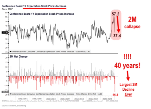 Additionally, in a somewhat contrarian manner, consumer sentiment towards the stock market has plummeted:
