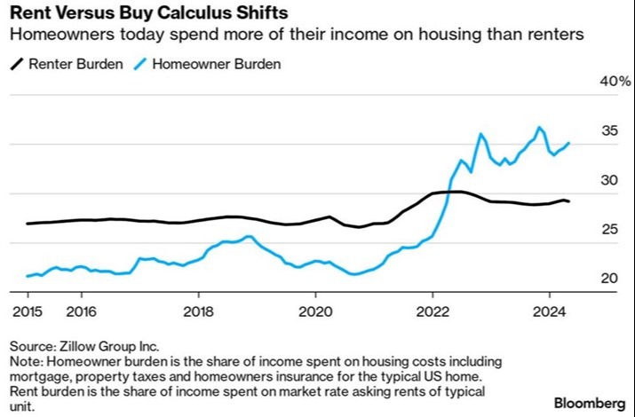 Rate pressure keeps frustrating homebuyers. Also, Zillow reported homeowners are now committing an average of 35% of their incomes to house payments, compared with just 29% for renters: