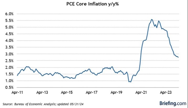 The personal consumption expenditures (PCE) report for April was also a breath of fresh air. The PCE index is a great leading indicator of consumer price index (CPI) and producer price index data. April’s PCE index was up 0.3% month over month, leaving it up 2.7% year over year and unchanged from March.